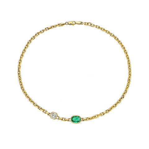 قلادة قلادة سلسلة ربط جذابة من LOZRUNVE فضة إسترليني ذهبية بيضاوية مربعة من الكريستال الزمردي