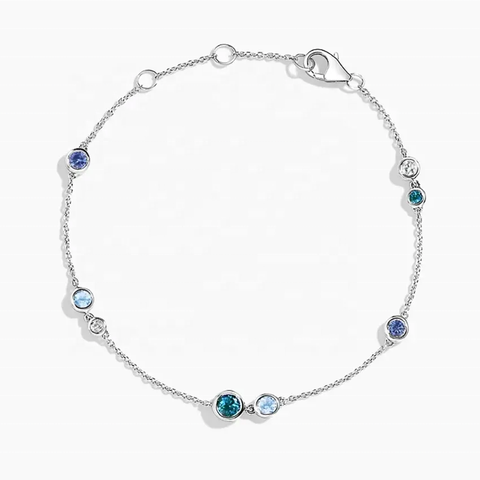LOZRUNVE 실버 925 보석 도매 독특한 베젤 레인보우 사파이어 지르콘 매력 팔찌