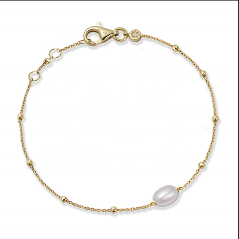 LOZRUNVE 925 스털링 실버 18k 금도금 담수 진주 문 클래식 구슬 팔찌