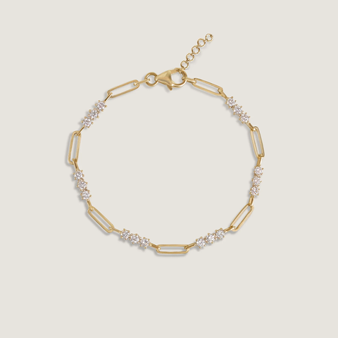 LOZRUNVE 우아한 보석 실버 925 직사각형 종이 클립 체인 다이아몬드 지르콘 매력 팔찌 발찌