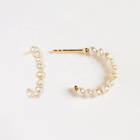 ต่างหูห่วงเปิดไข่มุกน้ำจืดขนาดเล็กสีเงินสเตอร์ลิงคลาสสิกหรูหรา925จาก Lozrunve